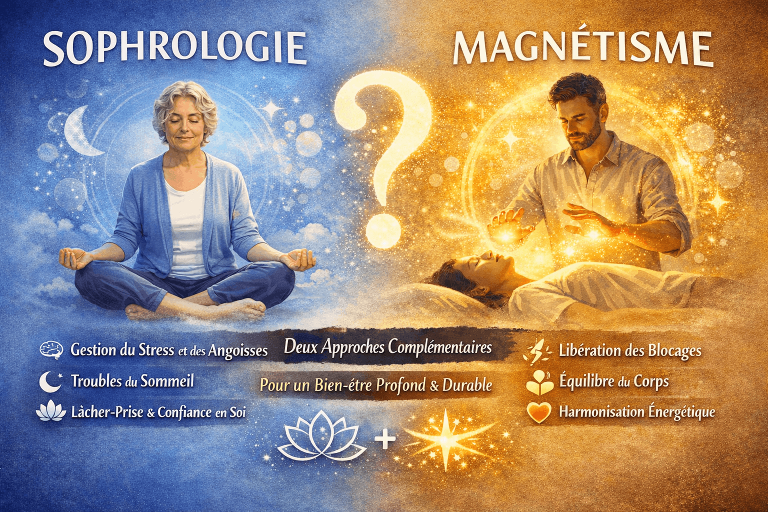 SOPHROLOGIE OU MAGNÉTISME : QUELLE APPROCHE CHOISIR POUR VOTRE MIEUX-ÊTRE ? Découvrez les différences entre sophrologie et magnétisme, leurs...